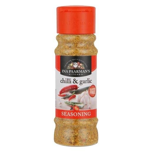 Ina Paarman's Kitchen Chilli & Garlic Seasoning is designed to enliven your dishes and recipes with its robust flavour profile. The blend includes chilli and garlic, with sea salt added to enhance the taste. The seasoning is gluten-free, catering to those with dietary restrictions. It is also suitable for vegan diets.
